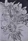 Scragle tat . 11" x 9" . graphite pencil, marker, ink pen. Finished 2019.