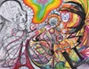 Chaos Monster . 11" x 9" . ink marker, acrylic marker, pencil outline, oil pastel . finished 2018 .